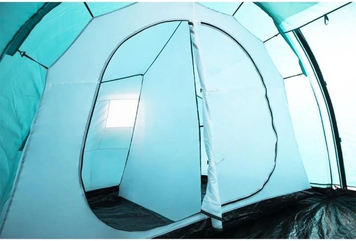 De Pavillo Family Ground 6 is een vis-a-vistent met drie slaapcabines voor 2 personen. Een grote aan een kant en twee kleinere aan de overkant. Hiertussen bevindt zich een ruim woongedeelte. De slaapcabines zijn los in de tent te hangen, dus je kunt de tent precies zo indelen als je zelf wilt. Het middengedeelte heeft een stahoogte van 200 cm, dus je kunt hier met gemak staan en rondlopen. Aan beide zijden van het woongedeelte zit een deur naar buiten. De twee deurkleppen zijn eventueel ook te gebruiken als luifels.