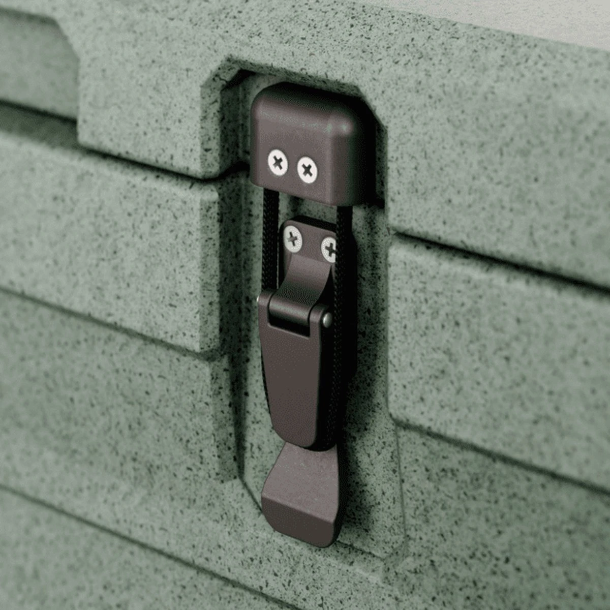 Duurzame, geïntegreerde scharnieren met roestvrijstalen pennen, sterke nylon vergrendelingen en roestvrijstalen bevestigingsschroeven