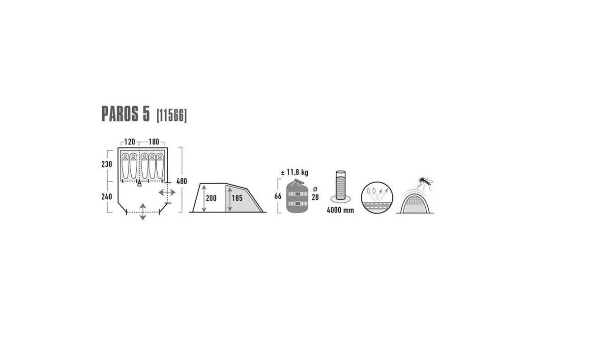 High Peak Paros 5 Tunneltent – 5-Persoons – Donkergrijs