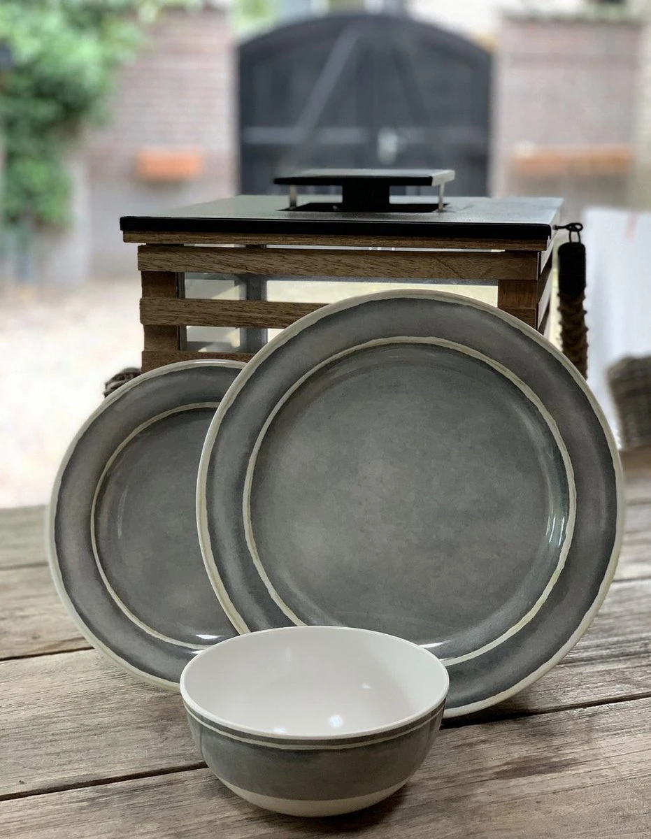 Een 12-delig servies van 100% melamine. Melamine servies is vrijwel onbreekbaar en zeer licht van gewicht. Daarnaast is het servies kraswerend en vaatwasmachinebestendig. Ideaal voor op de camping of bij uw buitenkeuken. Deze stijlvolle set is geschikt voor 4 personen en bestaat uit 4 borden, 4 ontbijtbordjes en 4 kommen.