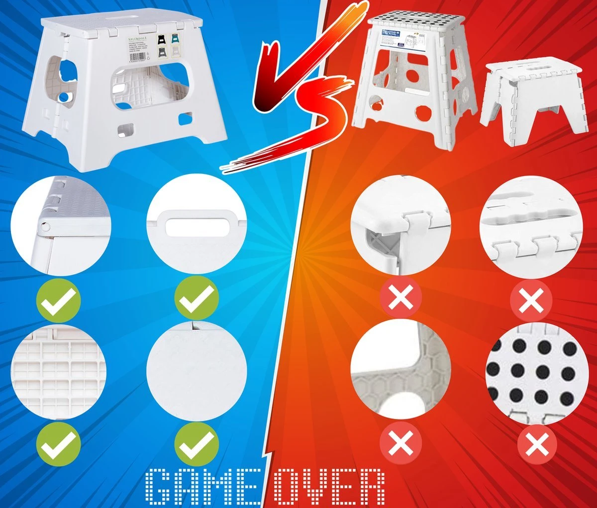Veelzijdig gebruik: deze opklapbare opstapkruk van Splendole is een essentieel item om in huis te hebben wanneer je een kleine boost nodig. Het is geweldig voor keukens, badkamers, kasten, kasten, campers en al die andere moeilijk bereikbare plaatsen.
